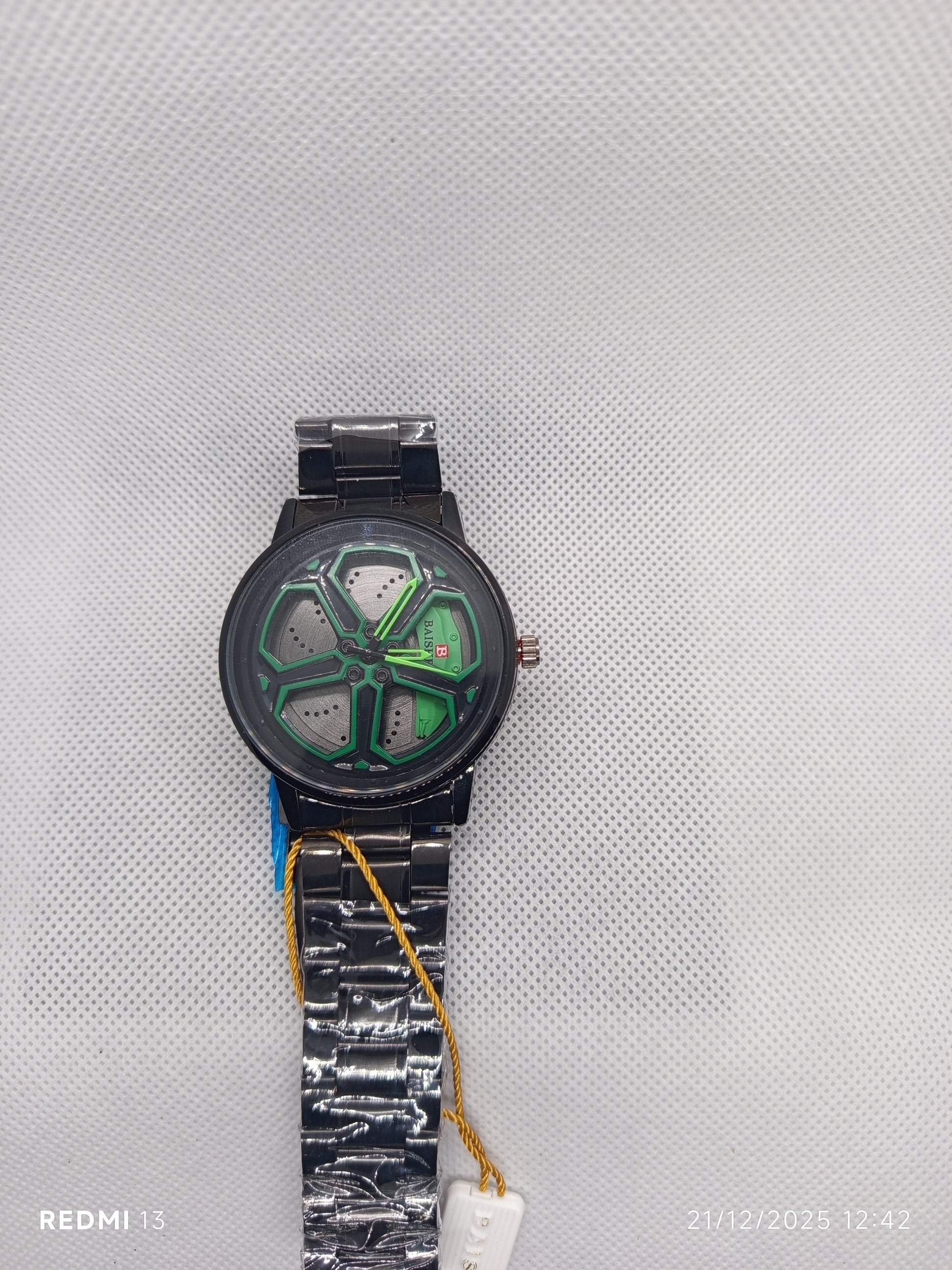 Alloy Wheel Watch With Rotating Alloy Wheel and Stainless Steel Strap